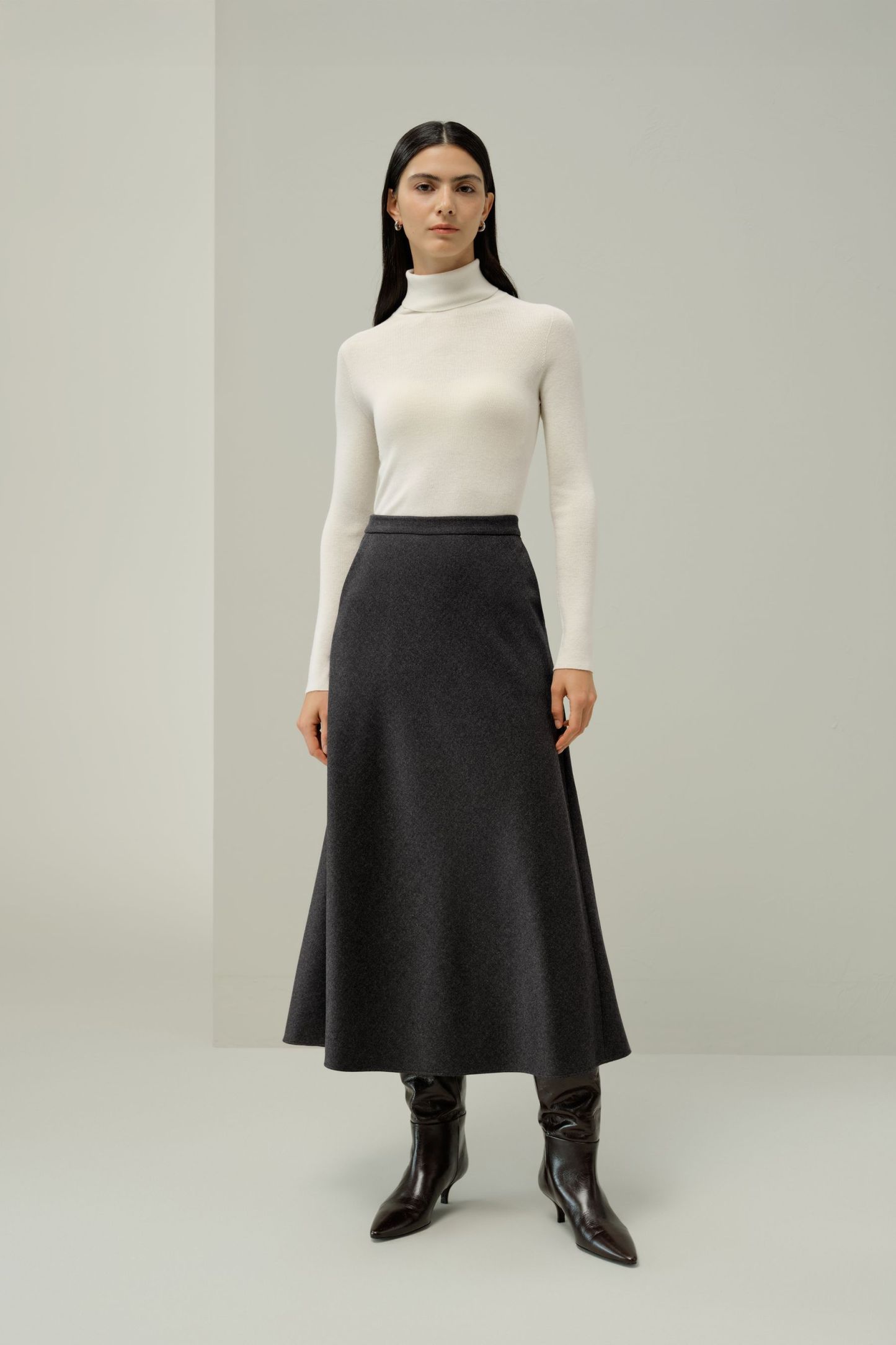 Mottled Silk-Wool A-Line Skirt